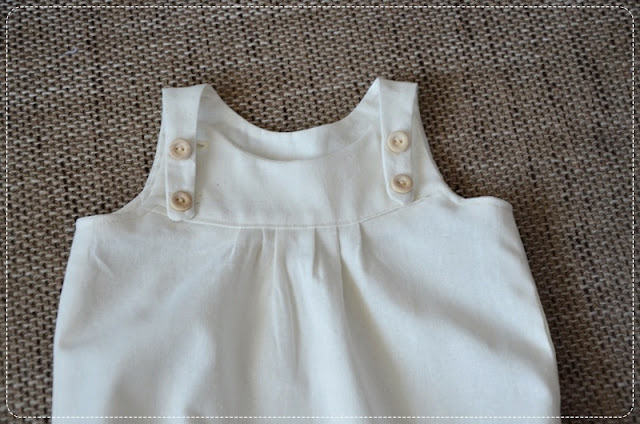 Ponieważ ostatnio zrobiło się bardzo gorąco, pewien dzieciak na gwałt potrzebował przewiewnych i eleganckich spodni. Na taką pogodę dla małego dziecka (niemowlaka) idealnie nadadzą się lniane spodenki, a żeby posłużyły dłużej mają podwójne drewniane guziki na szelkach. W kroku zamontowałam napy, by zmiana pieluszki nie była koszmarem.